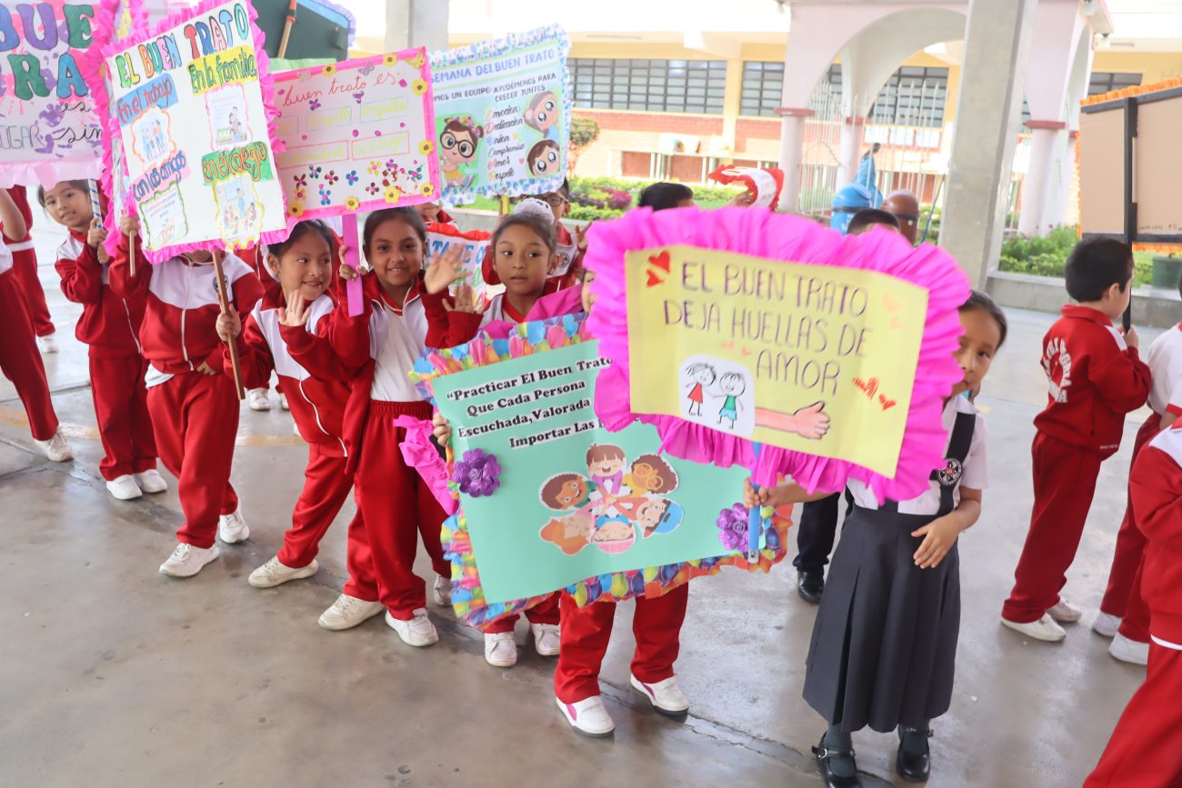 Nuestros niños del nivel primaria, con pancartas en mano, realizaron un pasacalle por las calles de nuestra zona de VILLA HERMOSA – EL AGUSTINO, todo con motivo de la campaña por el BUEN TRATO que se viene trabajando en todo el nivel primario.